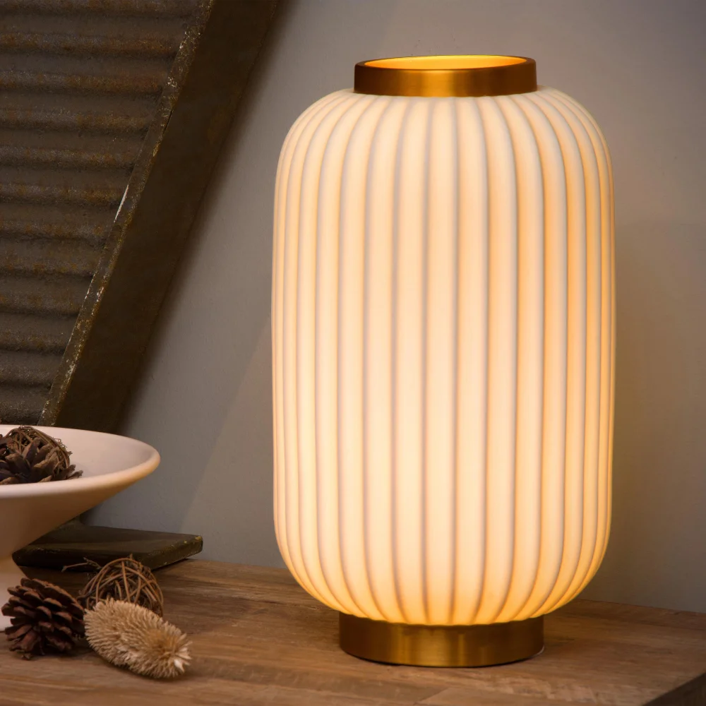 Gosse vypadá jako objekt z designového muzea. Žebrované opálové sklo rozptyluje světlo do jemného, příjemného svitu, který neoslepí partnera spícího vedle vás. Mosazné detaily dodávají šmrnc a eleganci. Tohle není lampa – tohle je šperk na váš noční stolek.