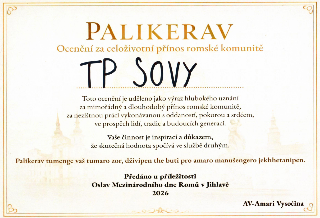 Přímo v rámci programu oslav převzal tým TP SOVY ocenění za svůj přínos romské komunitě Palikerav (přel. Děkuji). Toto veřejné poděkování vyzdvihuje jejich každodenní nasazení, profesionalitu a úsilí, které věnují podpoře rodin i jednotlivců přímo v terénu.